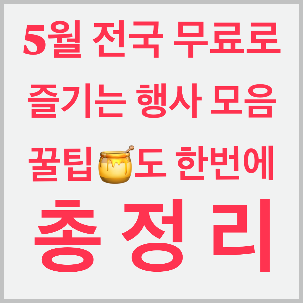 5월은 가정의 달과 함께 한국사람에겐 날씨가 좋은 몇 안되는 달 중 하나죠. 이럴떄일수록 자꾸 밖에 나가서 가족과 함께 자연을 누리고 친구들과 재밌는 행사가서 한참 웃고 그러다 보면 스트레스가 다 날라갈듯 합니다. 아무래도 경제 상황상 돈을 펑펑 쓰며 놀러다니는건 좀 부담 되니 무료로 즐길 수 있는 5월의 행사들을 모아봤습니다.